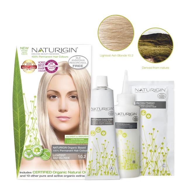 NATURIGIN Lightest Ash Blonde 10.2 gives the hair a cold blonde color. This hair color can also be used to create highlights if you want to add ashy tones to the hair. An advanced naturally derived formula, with a unique blend of certified organic lemon and mandarin essential oils, as well as 10 other pure and gentle organic extracts and natural oils that protects the hair during coloring and adds shine and nourishment to the hair. This hair color is completely free of ammonia, parabens, resorcinol and SLS, and covers grey hair up to 100%.